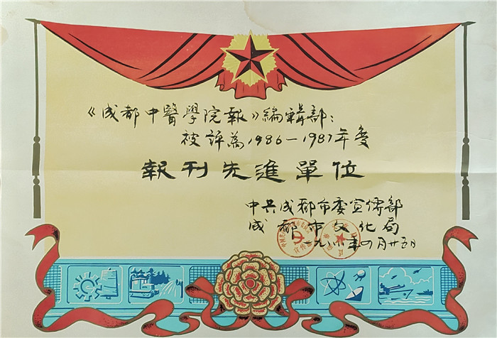 这张小小的报纸,不仅在成都和四川省高校校报中享有一定名气,院报的文章和版面多次获省市好新闻项目奖,是成都市新闻学会和四川省学校校报研究会常务理事单位,而且在全国高校同行中得到好评。1986年,山东中医学院党委书记张奇文同志,还专门写信给我院党委书记郑士杰,表扬我们的报纸办得好,很有特色。1987年,成都市委宣传部和市文化局,评选我院院报为年度报刊先进单位。