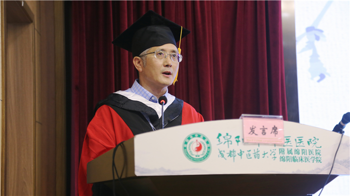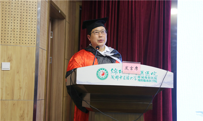 郑学斌在讲话中对附属绵阳医院的快速发展给予了充分肯定,对医院承办“蒲辅周班”所取得的成绩表示祝贺和感谢。郑学斌强调,“医教协同”是医学人才培养的关键和深化医学教育改革的重点,为学校和医院的深度合作与发展共赢提供了最好的机遇,而“蒲辅周班”作为一种床旁教学、医教协同的培养模式,为进一步实施“多临床、反复临床”、“早科研、反复科研”和中医学教育改革及中医人才培养质量的提升提供了有益探索和有效路径。最后他希望同学们秉承大医精神,不忘初心、砥砺前行,将“厚德博学,精思笃行”的校训内涵,发扬在未来各个领域。到祖国最需要、人民最需要的地方去,勇挑重担,传承创新,以崇高的职业道德与良好的诊疗技术服务人民。