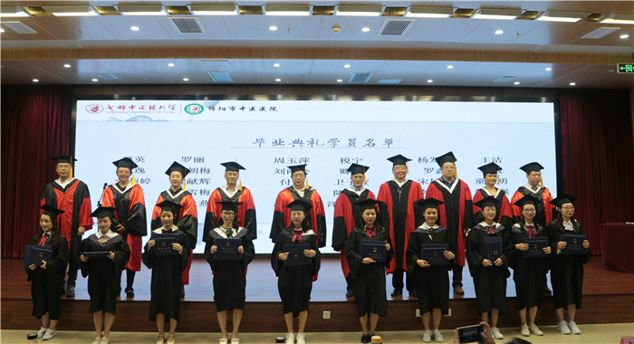 参会领导为首届“蒲辅周班”毕业生拨流苏、授学位、颁发毕业证书;毕业生给老师献上鲜花,表达感激之情;毕业生代表李钰德和教师代表刘铁陵分别作了热情洋溢的发言。毕业生们献上自编自唱歌曲《绵阳蒲班的日子》。
