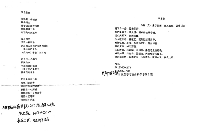 图为学生陈虹霖、邓华诗文创作作品