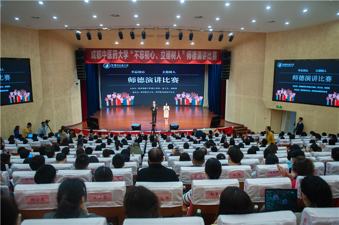 本次师德演讲比赛由党委教师工作部/人事处、校工会、校团委主办,药学院分工会、分团委承办,分初赛和决赛两个环节,各分工会共推荐15名教职工参加了初赛。自5月14日启动以来,经过网络投票和学校专家组初评的层层选拔,10名选手脱颖而出最终入围决赛。比赛分为主题演讲和话题探讨两个部分。决赛现场,教师们结合自身工作岗位,怀揣着如兰如菊的师者情怀,讲述了一个个感人的教育故事,畅谈了对教育事业的执著追求和对学生的无限关爱,抒发了立足三尺讲台、培育祖国栋梁的豪迈情怀。一种感动的情愫在现场激荡,讲演者们那些娓娓道来的动人的成中医育人故事,深深触动着现场的观众,博得了阵阵掌声。
