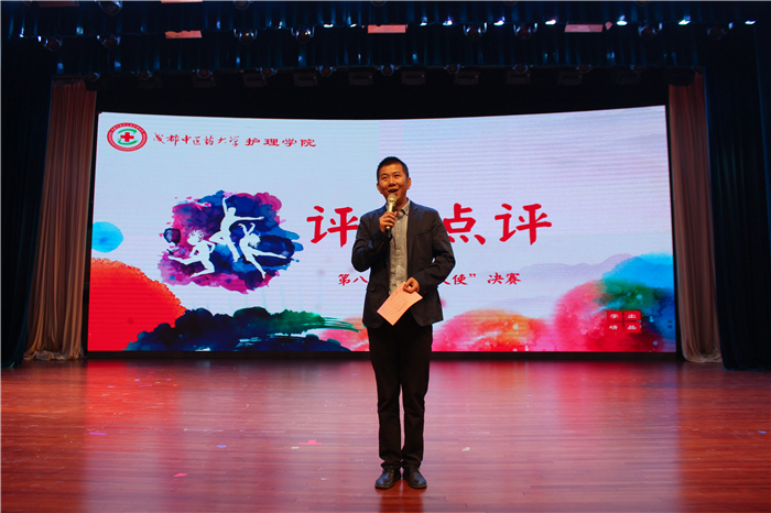 杨静致开幕词,护理学院作为学校重要的一只力量,在当下承载着建设具有成中医风格的一流护理本科的新使命,希望全院师生秉承“5.12”护士节南丁格尔的人道主义精神,拥抱新时代、奋进新时代;今年正值“五四”100周年,青年护生应勤学不辍、不负时代,弘扬奋进成中医、幸福成中医、美丽成中医、仁爱成中医的精神。