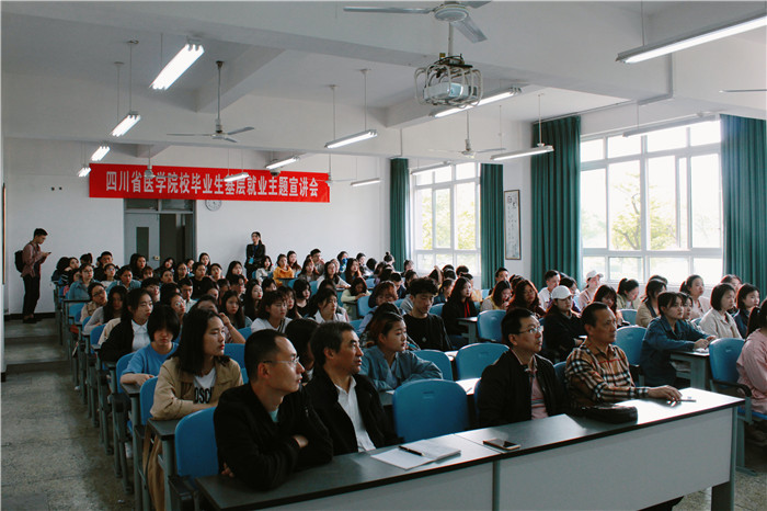 交流会期间还开展了四川省医学院校毕业生基层就业指导讲座,何鸿围绕基层就业国家当前政策,基层就业相关情况,医学生职业规划与发展等几个方面展开,鼓励同学们结合专业实际,转变就业观念,到最适合自身发展的地方就业,解答了同学们关于在基层医疗卫生单位就业的相关问题。