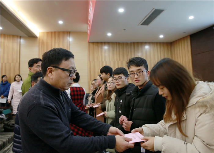 首先校党委副书记沈涛代表学校慰问受助学生,他回忆二十多年前自己曾经教授的两名家庭经济困难大学生的成长历程,也是在学校雪中送炭的资助帮扶下才得以顺利完成学业。学校始终以生为本,秉承关心、爱护、济困、助学的原则,让家庭经济困难学生能够在新春佳节与家人团聚,温暖过冬,同学们尽管放心安心、刻苦努力学习,学校做同学们最坚强的后盾。