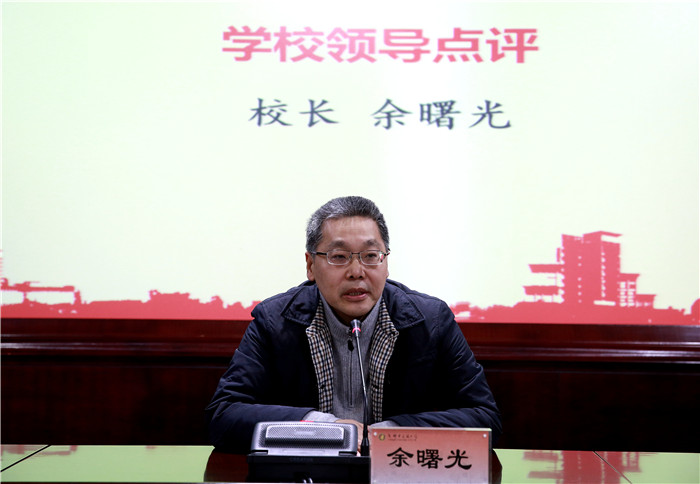 校长余曙光对各学院(部门)2018年工作作点评。他指出,2018年度目标管理考核要坚持任期目标和年度目标相结合,突出完成度、创新度、提高度这三个维度。从现场述职报告可以感受到,围绕学校“双一流”建设,学院(部门)2018年工作体现出“四个更”:责任更强了、目标更明了、思路更清了、措施更实了;还体现出“四个新”:新状态、新精神、新成就、新追求。这些是全校师生员工共同努力的结果,为学校“双一流”建设、提高学校核心竞争力打下了良好基础。他还指出,述职报告中的不足主要表现在:对立德树人这个根本任务贯彻到各项工作中述得不够、在关键核心指标对比差距上述得不够、在提升教学质量的精细工作上述得不够。