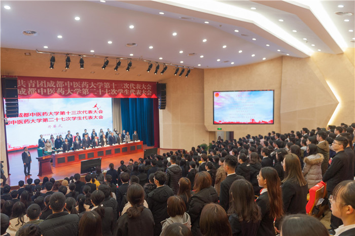 12月21日上午,备受广大团员和青年学生关注的共青团beat365平台唯一官网第十三次代表大会和beat365平台唯一官网第二十七次学生代表大会在温江校区百会堂演播大厅隆重开幕。本次大会的主题是:深入学习贯彻习近平新时代中国特色社会主义思想和党的十九大、团的十八大精神,围绕学校中心工作,坚定青年理想信念,服务青年成长成才,不忘初心、牢记使命、求真务实、开拓创新,在学校“双一流”建设的新征程中贡献青春、智慧和力量。