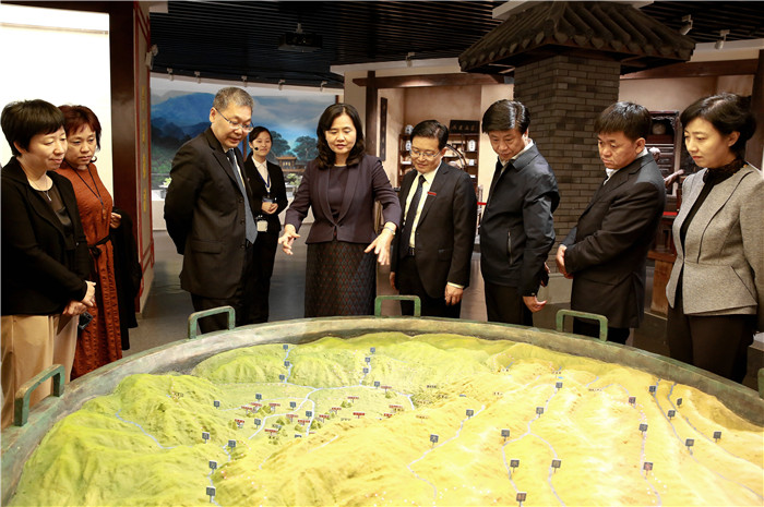 余艳红书记一行参观校园景观,调研了学校附属第二医院项目、校史馆、博物馆、中药学一流学科建设和校院企地深度融合情况。