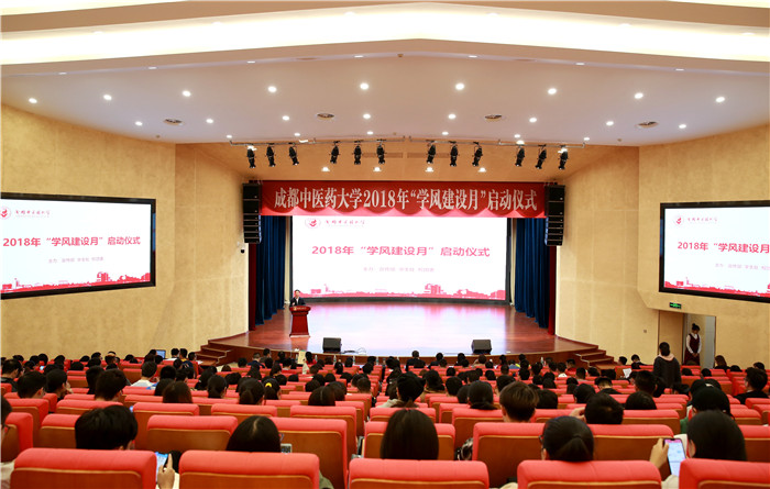 校学生会主席罗婷婷向全校同学发出加强学风建设的倡议。学校优秀班级代表2015级中药基地班和2015级八年制中医学二班也分别进行了班风学风建设交流分享。