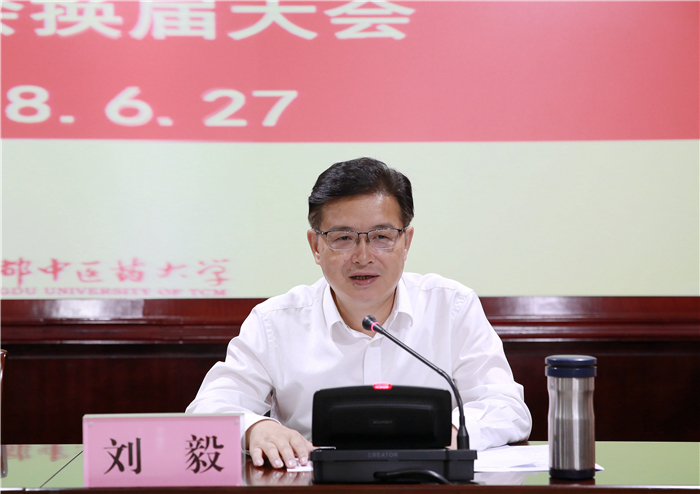 刘毅讲话指出,beat365平台唯一官网统战工作历史悠久、底蕴深厚,具有鲜明的中医药特色,统战工作人才辈出。他对新当选的主委、副主委、委员表示祝贺,同时提出三点希望。一是加强思想政治建设,提高政治站位,与党保持同一频道;二是加强组织建设,提升班子政治把握能力、参政议政能力、组织领导能力、合作共事能力和解决自身问题能力;三是积极为学校“双一流”建设做出更大贡献。