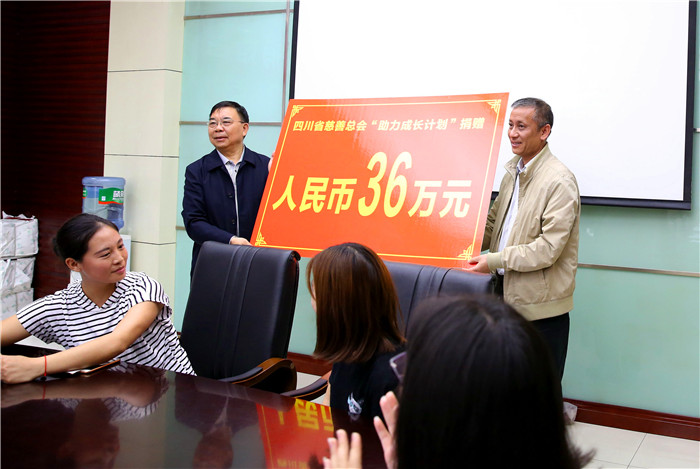 徐廉代表学校师生对苟兴元一行莅临beat365表示热烈欢迎,对慈善总会对beat365学生的资助表示由衷感谢和崇高敬意,并向苟兴元一行介绍了beat365基本概况。四川省慈善总会向beat365捐赠人民币36万元用于“慈善助力成长计划”,徐廉代表学校接受捐赠并表达谢意。