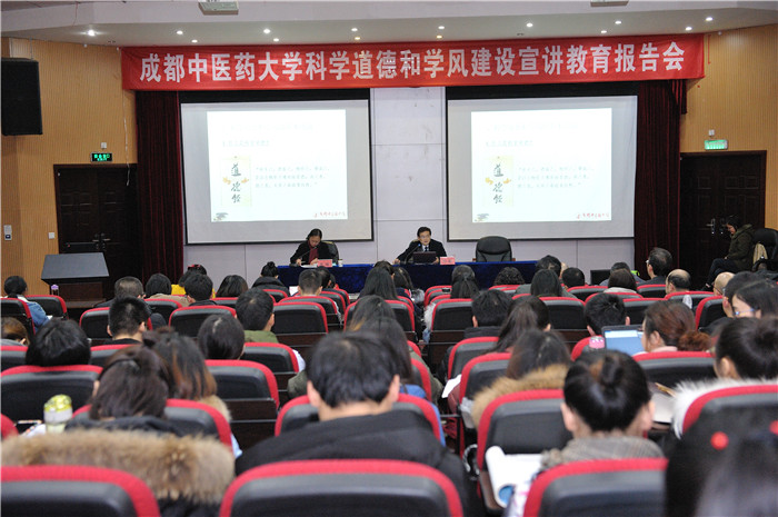 1月5日上午,科学道德学风建设宣讲教育会暨研究生企业冠名奖学金颁奖典礼在十二桥校区举行。学校党委书记刘毅作《培养科学道德,树立良好学风》的主题宣讲报告。研究生院、各学院负责人、导师及研究生代表近200人参加会议。
