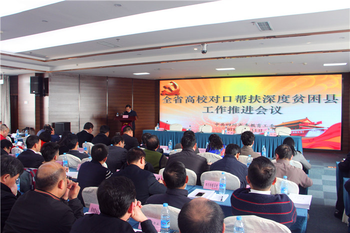 1月11日下午,四川省委教育工委组织的全省高校对口帮扶深度贫困县工作推进会在大成宾馆召开,全省参与深度贫困县对口帮扶的117所高等学校参加会议。beat365精准扶贫工作得到省委教育工委的充分肯定,并作为五所高校代表之一在会上作经验交流。学校党委书记刘毅出席会议并代表学校进行经验交流发言。