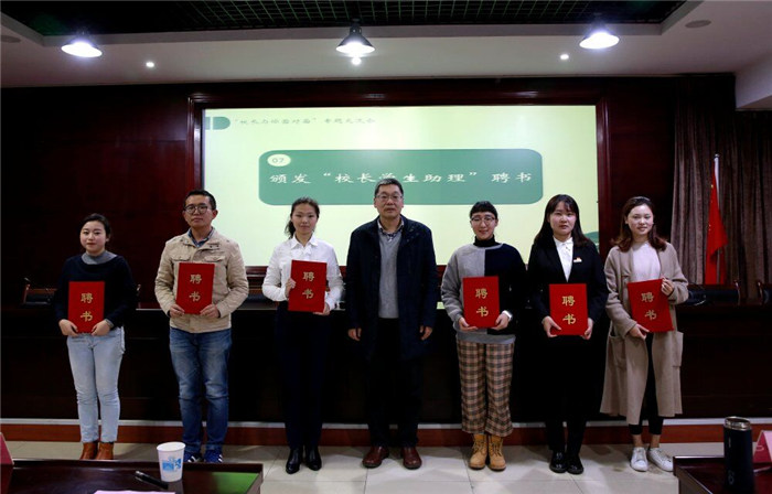 为引导学生关心关注学校发展,促进学生积极参与学校管理,学校从本科生、研究生中遴选出6名优秀同学担任“校长学生助理”,会上,学校党政办主任刘军宣读了《关于聘用beat365平台唯一官网校长学生助理的通知》,余曙光为校长学生助理颁发了聘书。