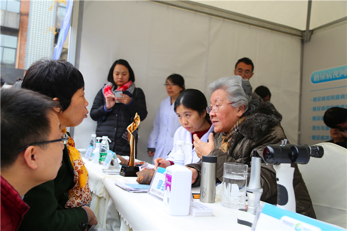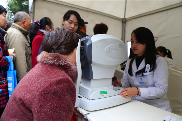 在随后的免费义诊活动中,廖品正、段俊国、朱思泉和医院主任医师周华祥、张富文、路雪婧,副主任医师潘学会、王国平,主治医师李红惠,医师刘玲、杜玉芹、吴青兰、王利萍等医生团队及其他医务人员为现场眼病患者提供了专业的诊断服务。