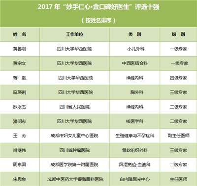 “妙手仁心·金口碑好医生”评选是由成都商报、四川名医联合组办,面对全省临床医生进行口碑评选,今年已经是第五届,有68家医院1.3万名医生资料入库。今年的评选中,在患者凭个人体验给医生投票打分的基础上,还引入了医学界的专业评价,邀请医疗界权威专家组成“明星专家评委团”,加上匿名同行评审,力求打造对一名医生的多维度立体评价体系,选出最受患者和同行推崇的好医生,最终产生一份汇集多方口碑的“权威”榜单。