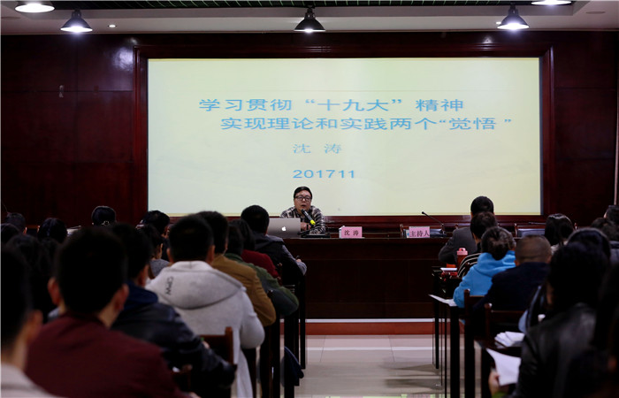 党委副书记沈涛首先作十九大精神学习辅导报告。沈涛以《学习贯彻“十九大”精神,实现理论和实践两个“觉悟”》为题,从学习的定义、如何学习十九大精神、理论觉悟、实践觉悟、如何加强和改进新形势下学校思想政治工作等五个方面深入浅出地讲解了习近平总书记的十九大报告。在谈及如何学习十九大精神时,沈涛分析了“七个讲清楚”和一条主线,即学习十九大精神要紧紧围绕习近平新时代中国特色社会主义思想,要按照习近平总书记的要求,学懂、弄通、做实,既要讲内容,又要讲方法。在谈理论觉悟和实践觉悟时,他强调理论觉悟需打通历史和理论两个脉络,即人类社会发展历史、党的历史,以及新时代中国特色社会主义思想脉络;而实践觉悟则需要知行合一、狠抓落实。他还特别指出了作为中医药大学的学生工作队伍需要关注的十九大报告重点,即教育、青年、健康中国。他从beat365一流学科建设,青年奋斗的责任、方法、途径,以及中西医并重、传承发展中医药事业三个角度对关注重点做了切合beat365学工队伍实际的精彩讲解。