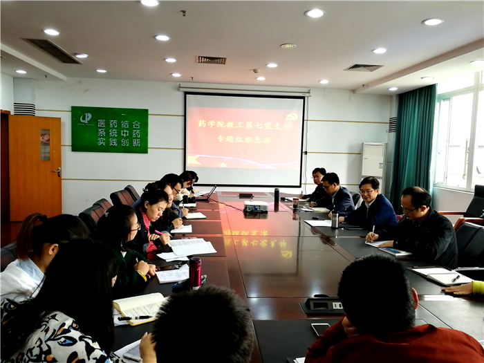 近日,药学院教工第七党支部开展学习十九大精神专题组织生活会,学校党委书记刘毅以普通党员身份参加组织生活会。会议由药学院教工第七党支部书记任波主持。