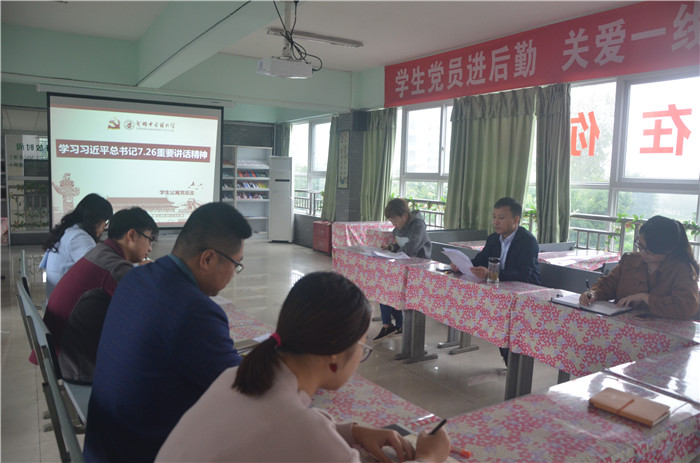 10月11日下午,学生公寓党总支在学生公寓连廊开展习近平总书记7·26重要讲话精神及黄大年同志先进事迹专题学习会。会议由学生公寓党总支书记田晓放主持,党总支全体委员和公寓团总支负责人参加了学习。