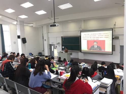 10月18日,中国共产党第十九次全国代表大会在北京人民大会堂隆重开幕,马克思主义学院思政课教师在课堂上组织同学通过网络平台集体观看并学习党的十九大报告。