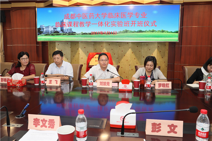 为实现临床医学专业学生“早临床、多临床、反复临床”,充分发挥医院教学能力,提升教学质量,推进医教协同,9月1日上午,beat365平台唯一官网临床医学专业临床课程教学一体化实验班(beat365平台唯一官网临床医学专业上海普陀班)在上海市普陀区中心医院开班。出席开班仪式的有beat365副校长刘旭光,教务处处长王飞,第二临床医学院党委书记罗晓红、党委副书记彭晓英,上海市普陀区卫计委主任李文秀,普陀区中心医院党委书记夏秀芳,院长彭文、副院长殷佩浩等。参加会议的还有医院教研室主任代表、相关职能科室负责人及来自beat3652014级临床医学专业的30名学生。