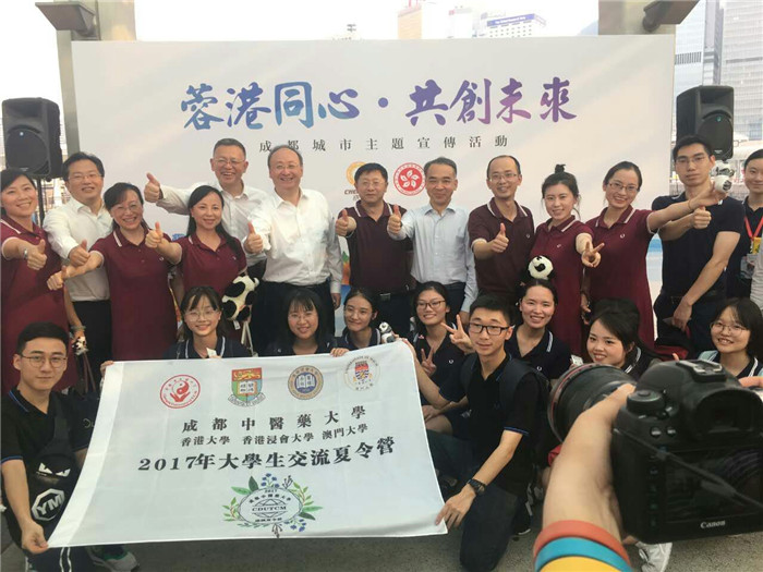 8月21日至25日,四川省人民政府主办的“川港澳合作周”在香港拉开帷幕。8月21日,“川港澳合作周”第一天,由成都市人民政府新闻办公室主办的“天府乐章·畅响川港”音乐快闪活动在香港中环天星码头启动,应承办单位成都商报邀请,beat365“2017年大学生港澳夏令营”师生前往参加,师生在现场积极向香港市民展示四川的特色文化,为活动加油、鼓劲,助力活动蓬勃开展。活动期间,四川省省委副书记、省长尹力,省委常委、成都市委书记范锐平到现场看望和慰问活动工作人员。尹力、范锐平亲切慰问beat365参加活动的全体师生,充分肯定beat365促进川港澳大学生交流夏令营活动,并与师生亲切合影留念。