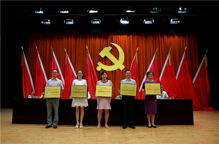 大会举行了先进典型交流发言。先进基层党组织代表、管理学院党委2013级学生党支部书记李韵涵以《用心培育、服务当先,充分发挥支部育人作用》为题,优秀共产党员代表、药学院科研测试中心研究员李芸霞以《时刻牢记党员身份不忘初心不懈奋斗》为题,优秀党务工作者代表、机关党委第一党总支组宣支部书记王其奇以《“小书记”有“大责任”:以党建标准化落实全面从严治党要求 》为题,优秀党建特色项目负责人代表、后勤党总支党建特色项目负责人杨永成以《走进后勤助力成长》为题,相继上台发言。