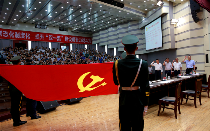 6月29日下午,学校在温江校区召开庆“七一”暨推进“两学一做”学习教育常态化制度化工作会,庆祝中国共产党成立96周年,部署beat365推进“两学一做”学习教育常态化制度化工作。会议的主题是:推进“两学一做”常态化制度化,提升“双一流”建设凝聚力战斗力。在家的校领导刘毅、余曙光、彭成、徐廉,中层领导人员,分党委、党总支委员,党支部书记,受表彰的先进基层党组织负责人、优秀党务工作者和优秀共产党员,师生党员代表,民主党派基层组织、侨台联负责人等共计380余人参加会议。学校党委书记刘毅作推进“两学一做”学习教育常态化制度化主题报告。会议由学校党委副书记、校长余曙光主持。