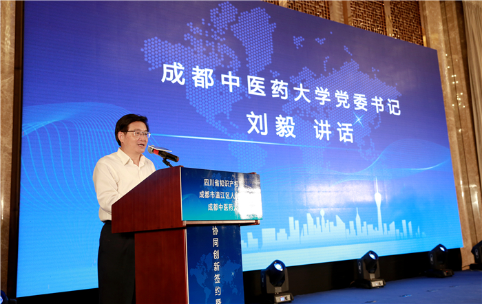 刘毅在讲话中强调,历史发展到今天,中医药发展有了更广阔的前景,省委省政府提出的“做强川药”“发挥中医药特色优势做好医疗服务”“把四川建设成为中医药发展高地和全国重要的中医药区域中心,实现由中医药大省向中医药强省转变”以及温江区委区政府为落实成都国家中心城市产业发展大会精神,立足“三医融合”定位,着力打造“成都医学城”“成都健康服务业集聚区”和“成都都市现代农业高新技术产业园”等,为成中医履行服务社会经济发展的高校职能提出了新的要求。刘毅感谢四川省知识产权局为beat365平台唯一官网提供的有力支持,局校将合力打造中国中医药高校知识产权规范管理示范校、知识产权理论研究前沿校、知识产权人才培养先行校、知识产权保护运用样板校,为四川知识产权强省建设谱写beat365平台唯一官网篇章;感谢温江区委区政府为beat365平台唯一官网产业技术研究院的创办给予的大力支持,产研院将围绕中医药健康产业发展,对接新发展理念的国家中心城市建设和温江“五个之城”的奋斗目标,解决制约高校科技成果转化的深层次问题和障碍,破解科研与市场需求脱节,科技与经济“两张皮”难题,创新体制机制,集成和凝聚beat365平台唯一官网的创新要素,激发教师创新创业热情,协同校外企事业单位,吸引产业化技术研发人才和技术转移人才,打通基础研究、应用开发、成果转移与产业化各个环节,提供产业化项目的遴选、培育、支持、示范直至产业化的全程服务,加快科技成果的培育、转化和产业化。学校将与四川省知识产权局、温江区政府及高新技术服务企业协同,以专利为重点,围绕商标、版权、植物新品种保护、传统医药知识产权保护等多种形式的中医药领域知识产权开展运营工作,搭建中医药产业知识产权运营全过程创新循环体系,架起中医药高校与企业连接的桥梁,加速中医药科技成果转化为商品和服务,实现对科研人员创新主体的正向激励,提升科技成果价值、实现创新成果增值,加快中医药知识产权工作从成果管理向价值管理转变。
