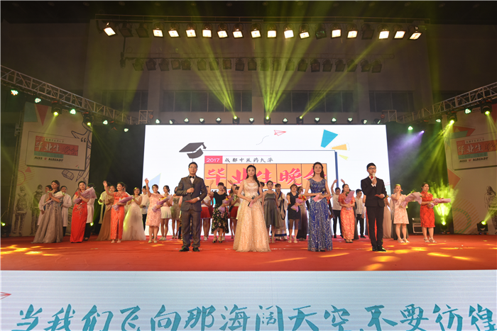 本次晚会以“毕生有你,三生有幸”为主题, 由“风华正茂、幸恰逢同学少年”“花开正好,请不负少年狂傲”“后会有期,愿归来仍是少年”三个篇章组成。晚会将毕业生的大学生活融入歌曲、舞蹈、沙画等节目形式中,主题鲜明,真情实感、精彩纷呈,到场的老师和同学共同享受了一场视听盛宴舞蹈《致青春》《寝室那些事》,舞台剧《匆匆那年》等节目从不同侧面回顾了美丽难忘的大学生活;歌曲串烧《我们》《奔跑吧、毕业生》等节目则彰显了毕业生风华正茂的激情和即将踏入社去会实现梦想的自信;武术《剑舞》歌舞《踏歌》T台秀《毕业狂欢》等高质量品牌节目把晚会推向高潮;朗诵《再见,成中医》从学业、生活及情感等各方面的细节入手,深情演绎了毕业生对母校的依依别理之情,到场毕业生无不感同身受;节目《默默爱着你》,将视线对准与学生们在校生活息息相关的保安、食堂厨师和保洁工,并将学生们最亲密的宿管阿姨们请上舞台,体现了毕业生们浓浓的感恩回馈之情,引起到场教师和学生共鸣。晚会最后在千人大合唱《最初的梦想》的歌声里落下帷幕。