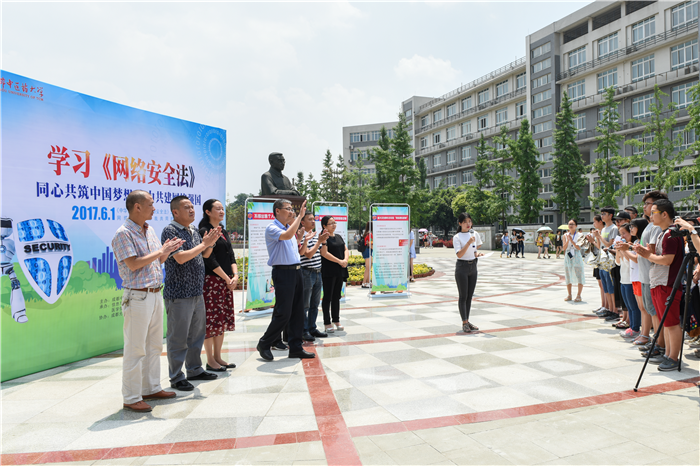 6月7日,学校信息化建设领导小组主办,学校信息与教育技术中心、保卫处、医学信息工程学院承办的“《网络安全法》宣传周”活动启动仪式在李斯炽广场举行。校长、信息化建设领导小组组长余曙光,相关部门学院负责人及部分师生代表参加启动仪式。余曙光宣布“《网络安全法》宣传周”活动正式开始并带领师生代表签名承诺安全用网。
