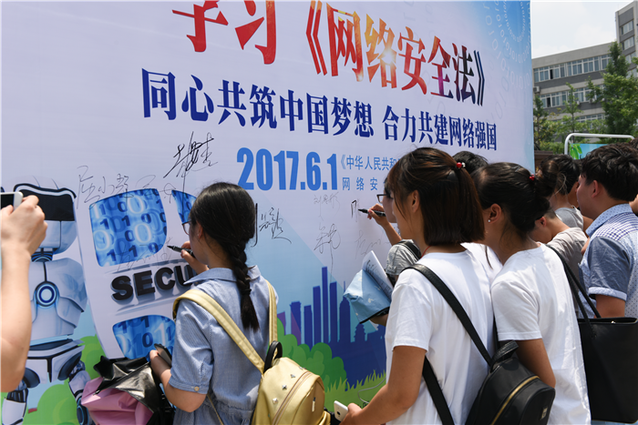 现场举行了签名活动,在场的每位老师以及同学都用他们的名字去实践自己的诺言。据悉,本次网络安全法宣传周将开展专家知识讲座、大学生网络安全知识竞赛、公寓主题宣传、主题班会、团支部活动等主题宣传活动。通过丰富多彩活动使《网络安全法》深入人心,切实提高全校师生的维权意识和个人信息保护意识。