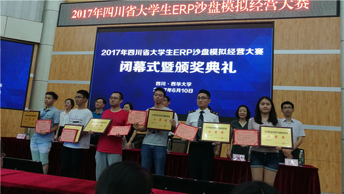 四川省大学生ERP沙盘模拟经营大赛是四川省教育厅为全面推动四川省高等教育人才培养模式创新和实践教学改革,展示大学生积极向上、奋发进取的精神风貌和熟练的经济管理专业技能而组织开展的全省性赛事。比赛依托“商战”与“供应链”两个商业沙盘全真模拟企业经营的过程,在激烈的市场竞争氛围中让广大学子感受企业经营理念。共有来自四川大学、西南财经大学、西南石油大学与西华大学等省内33所高校的170余名选手参赛,竞争激烈。