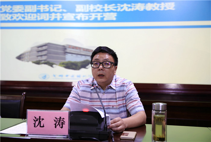 沈涛致欢迎辞并宣布体验营正式开营。他表示,学校将以满腔的热情、真诚的态度、周到的安排,让每一位同学都感受一次愉快而难忘的“成中医之初体验”!他希望全体营员在3天的活动里,能全身心投入、全方位体验,充分感受中医望闻问切皆识病的博大精深,体会中药一花一草皆入药的神秘莫测,见证针灸提插捻转行补泻的神奇手法。他指出,祖国医药需要年轻人来继承与发扬,真诚地欢迎大家报考beat365平台唯一官网,期待着与大家相逢在美丽的蓉城,相逢在温馨的校园,相逢在成中医开学典礼的会场!
