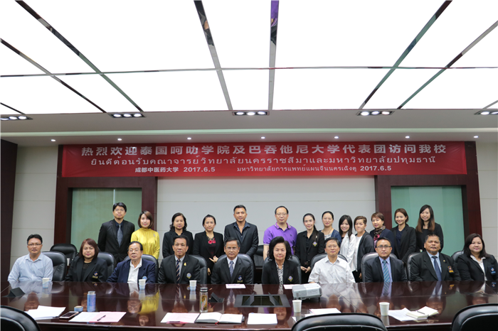 6月5日上午,泰国巴吞他尼大学及泰国呵叻学院代表团一行18人到beat365访问交流。学校副校长彭成教授在温江校区会见泰国代表团,相关部门负责人参加会谈。
