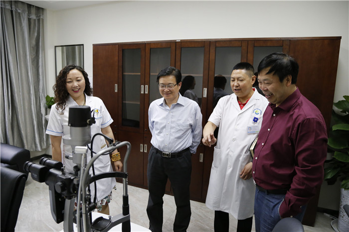刘毅在参观和听取汇报后,对眼科学院、眼科医院和眼科研究院在短时间内的快速发展用“创新”和“震憾”进行了概括,充分肯定了“三院一体”模式的体制机制。他指出,眼科三院依托国家级中医眼科学重点学科建设发展,是几代中医眼科人长期不懈、辛勤付出的结果。附属银海眼科医院是beat365在新形势下的引领和标杆,学校会继续对眼科三院进行支持。刘毅还指出,医院开业在即,希望全体医护人员上下一心,众志成城,努力建设好医院,为眼健康提升事业发挥重要作用。同时,刘毅还希望眼科学院在人才培养方面,继续做好教职工的育人育才理念和意识培养,希望学科在发展过程中继续做好思想政治教育建设。在创建“双一流”工作中,切实做好学科创新发展,进一步加强中西医优势结合、医教研结合,要把弘扬中医药文化融入中华优秀传统文化传承发展工程,推进中医药现代化和国际化。