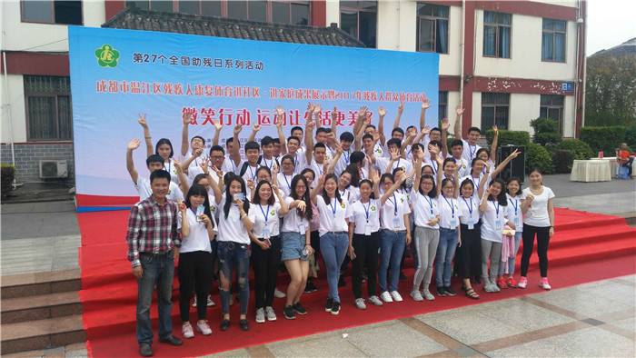 5月21日是第27个全国助残日。5月18日,由成都市温江区人民政府残疾人工作委员会主办了“成都市温江区残疾人康复体育进社区·进家庭成果展示暨2017残疾人群众体育活动”,beat365体育学院师生50余人应邀参加,院长邬建卫与温江区残疾人联合会签署了助残合作框架协议。