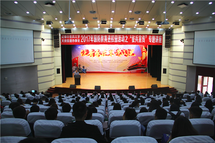 近日,学校在温江校区举行2017年征兵宣传专题讲座,学校党委常委、纪委书记延建明出席了讲座,相关部门负责人和来自各学院共300余名师生代表参加了讲座。
