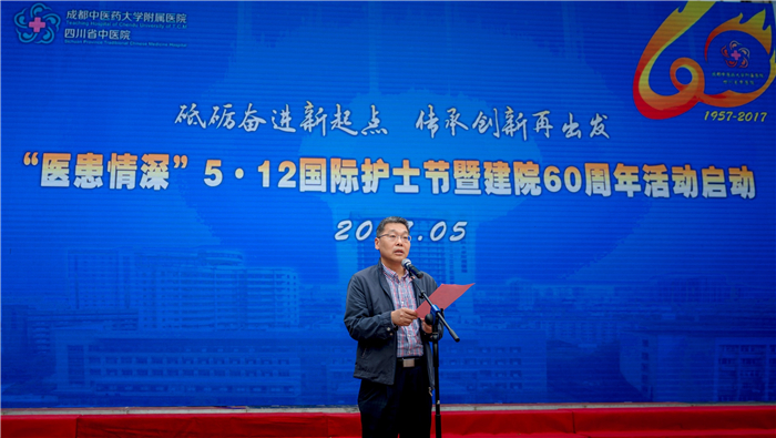 余曙光充分肯定医院60年来为中医药人才培养、为人民健康事业作出的重要贡献。他说,一流的中医药大学,必须要有一流的附属医院。学校当前正凝心聚力,全力推进“双一流”建设。希望医院全体职工以60年再出发为新起点,再接再厉,进一步提升医疗服务能力与水平,加强临床研究,推动医教研协调发展,建好国家中医药传承创新基地、国家中医药临床研究中心和治未病中心。他代表学校向护理工作者致以节日祝贺,并问候全院职工,预祝建院60周年活动取得圆满成功。
