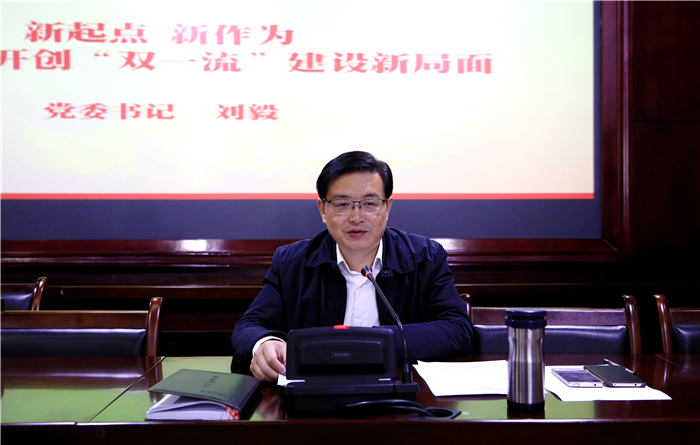 四是在创新机制上狠下工夫。刘毅强调指出,当前创新办学治校的体制机制尤为紧迫。我们要加强以建设“双一流”为目标创新深化内部治理结构,以建设高水平人才队伍为重点创新人才培养引进机制,以提高人才培养质量为核心创新教育教学体制机制,以增强协同创新能力为导向创新科技管理体制机制,以提升核心竞争力为目的创新学科建设体制机制,以提高效益为根本任务创新财经管理体制机制,以增强服务师生能力为中心创新后勤体制机制,以提高领导能力和水平为基础创新干部管理体制机制,为“双一流”建设奠定体制机制基础。