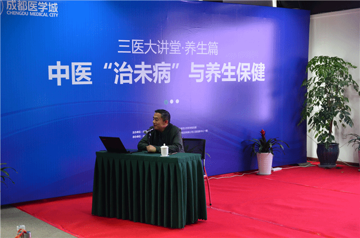 3月30日下午,药学院党委和成都海峡两岸科技产业开发园党工委联合举办的“beat365平台唯一官网药学院党委-科技园党工委党建项目‘校地合作-三医大讲堂’在成都医学城·三医创新中心举行。药学院党委书记、博士生导师冯全生教授作“中医‘治未病’与养生保健”专题讲座。来自温江区人民政府、企事业单位、成都医学城、成都海峡两岸科技产业开发园入驻企业的两百余名员工参加讲座。