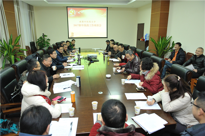 1月10日上午,学校在十二桥校区一会议室召开主题为“同心协力,共谋发展,推进学校‘双一流’建设”的2017新年统战工作座谈会。党委书记刘毅,副书记、副校长沈涛,副校长刘旭光,党委常委、副厅级调研员徐廉出席会议,会议由徐廉主持。学校民盟基层委员会、农工民主党总支委员会、致公党支部委员会、九三学社基层委员会、侨台联、知联会负责人及无党派人士代表、人大代表、政协委员代表、党政办公室、党委统战部负责人参加了座谈会。