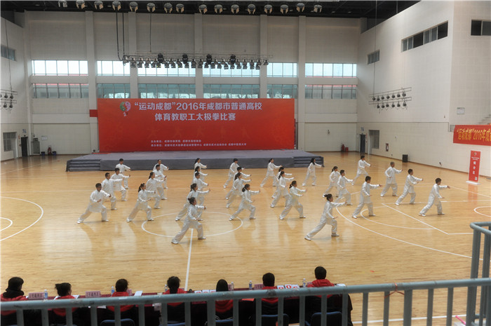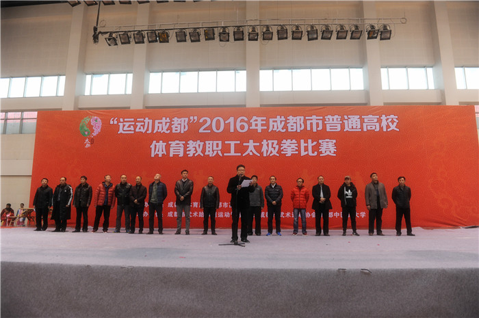 12月11日上午,由成都市体育局、成都市高校体协主办的“运动成都”2016年成都市普通高校体育教职工太极拳比赛在beat365举行。学校党委副书记、副校长沈涛、成都市体育局副局长何荣波、成都市武术跆拳道管理中心主任徐远伦以及各兄弟院校体育部门领导出席开幕式。开幕式由成都市高校体协主席、四川大学体育学院院长吕志刚主持。