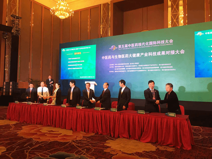 10月24日下午,在第五届中医药现代化科技大会期间,四川省人民政府举办的“中医药与生物医药大健康产业科技成果对接大会”于四川省成都市世纪城国际会议中心隆重举行,省政府副秘书长罗志平出席了会议。会上发布了近年来四川省中医药健康产业取得的成果,同时进行了科技成果与产业资本的对接。学校眼科学院院长段俊国代表beat365平台唯一官网、太极集团董事会主席白礼西代表投资人,在大会上签订了beat365平台唯一官网眼科医院项目合作协议。据悉,成都中医大银海眼科医院是目前西部地区最大的眼科医疗项目,医院依托beat365平台唯一官网中医眼科学国家重点学科,建设医疗、教学、科研三位一体的国际眼科医疗中心。眼科医院预计明年初正式开业运营。