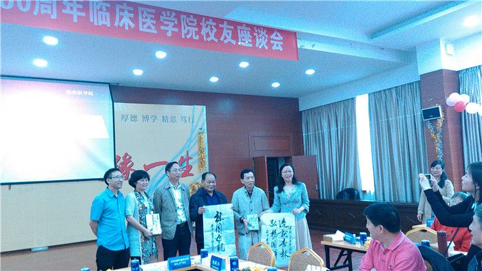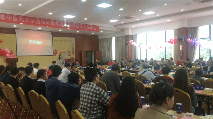 在座谈环节中,校友代表、四川省中医药管理局副局长杨正春以双重身份表达了对母校六十华诞的祝贺以及对母校培养的感激之情。校友代表、四川省中医药学会会长杨殿兴现场赋诗一首献礼母校,祝福母校再次腾飞。50、60年代入校的老校友们纷纷怀念青春岁月,追忆恩师先贤。从美国、加拿大、香港等地专程赶回的校友们则向母校汇报成绩,感恩母校培育。有的校友向母校赠送自己呕心沥血的专著、书法;有的校友现场高歌一曲,献礼校庆,传递思念之情;有的校友就中医药事业发展、中医学生就业形势、附属医院治未病中心建设等发表意见和建议;有的校友希望在校的青年师弟师妹们要坚定学习中医的信念、热爱中医、传承中医、发展中医,为母校取得更加辉煌的成就!