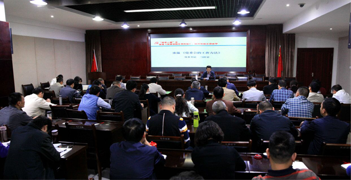 马跃荣带领与会人员重温学习毛泽东同志《党委会的工作方法》,分析了《党委会的工作方法》的历史背景意义。指出毛泽东同志在这篇文章中提出的十二条重要工作方法,总字数不到三千,蕴含着极其丰富的内容,既是对以前党的工作方法的总结,又是面临新问题对党的领导机关和干部提出的新要求。《党委会的工作方法》全文,充分体现了坚持民主集中制和树立规矩意识的基本思想。比如,一、二、三、四、十条都是强调坚持民主集中制这个问题。又比如“少数服从多数”,“要把问题摆到桌面上来”,“互通情报”讲的就是如何遵守政治纪律和政治规矩;“要‘抓紧’”,“安民告示”讲的是如何改进工作作风;“学会‘弹钢琴’”,“注意团结那些和自己意见不同的同志一道工作”,讲的是如何提高领导方法和艺术。这十二条方法既蕴含着马克思主义的一般要求,又体现了中国作风和中国方式。