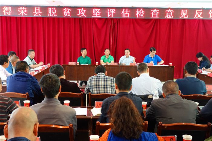评估调查组先后深入得荣县8个乡镇、12个建档立卡贫困村和55户拟今年退出的建档立卡贫困户实地检查核实,个别访谈520多名基层干部群众。本次评估检查主要采取定向摸底和随机检查相结合、现场评估和资料调研相结合、入户走访和倒查印证相结合的方式,评估重点是突出目标导向、问题导向、结果导向。检查组重点检查了2016年拟退出贫困村“五有”情况、2016年拟脱贫贫困户“两不愁、三保障”情况、17个扶贫专项计划推进情况和贫困村“五个一”帮扶情况等四大方面的内容,发现了七个方面的问题,并在28日召开的脱贫攻坚评估检查意见反馈会上向得荣县领导班子和责任部门负责人进行了认真反馈。检查组对得荣县委、县政府的扶贫脱贫工作给予了肯定,认为之前的工作为完成2016年脱贫攻坚任务奠定了基础,但仍面临较大困难,距离省委的要求还有较大差距,需要全县上下倍添措施,倍加努力,攻坚克难,坚持问题导向,压实工作责任,才能完成年度脱贫攻坚任务。