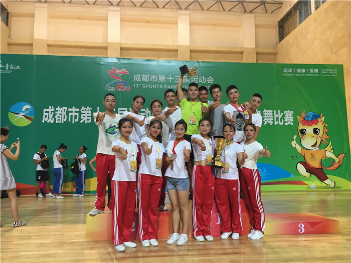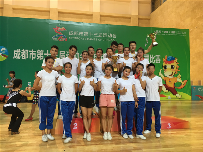 6月23日由成都市人民政府主办,市体育局、市教育局、青白江区人民政府共同承办的“成都市第十三届运动会广场舞(成人组)”在青白江区文化体育中心举行,来自成都各区、市、县的各代表队参加了比赛。beat365学生代表温江区在本次比赛中喜获2金2银2铜的优异成绩。