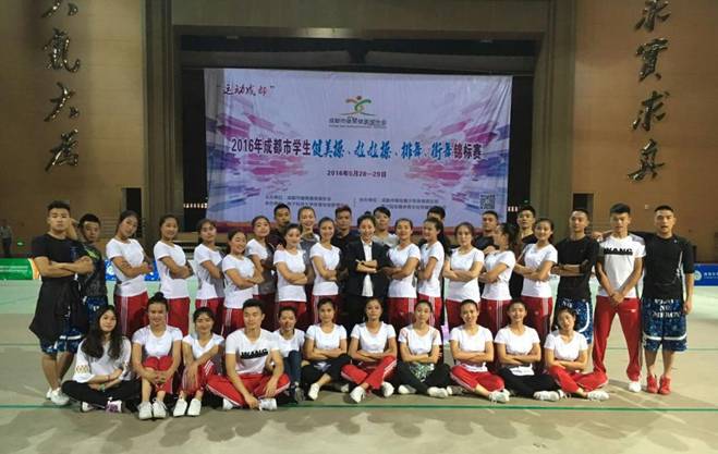 5月28日—29日由成都市健美健美操协会主办,电子科技大学承办的“运动成都”2016年成都市学生健美擦、啦啦操、排舞、街舞锦标赛在电子科技大学举行,beat365体育学院体育学院2013级健美操专选班35名同学在专业老师赵莉的带领下参加比赛,获得“有氧踏板”和“有氧搏击”两个项目的一等奖。