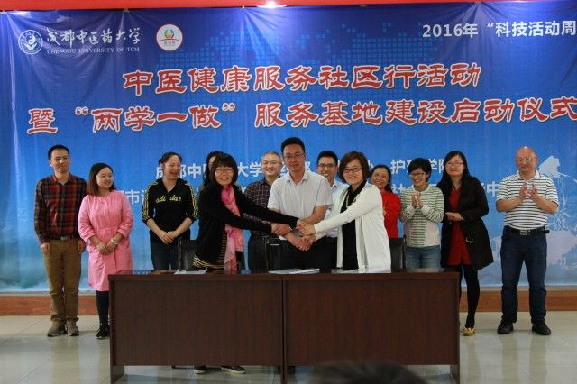 中医健康服务社区行活动暨“两学一做”服务基地由护理学院党委、成都市温江区公平街道党工委、成都益相伴社会工作服务中心三方合作。护理学院将定期派出专家、学者和学生党员先锋队到社区开展讲座、义诊、中西医结合护理实践、健康养生知识宣传和志愿者服务等活动,为社区和居民提供中医健康服务。校、地双方还将在党建和党员学习教育、实践等方面开展深入合作。