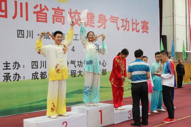 为深入贯彻落实《全民健身条例》,弘扬中华民族传统文化,增进大学生身心健康,推动健身气功项目在高校的进一步开展,四川省体育局健身气功管理中心于4月21日-23日在成都信息工程大学举办了2016年四川省高校健身气功比赛。本次赛事共有来自beat365平台唯一官网、成都体育学院、四川师范大学、成都信息工程大学等12所高校的128名运动员教练员参加比赛。比赛项目为国家体育总局审定推广的健身气功“易筋经、五禽戏、六字诀、八段锦”四种普及和竞赛功法的集体及个人比赛。